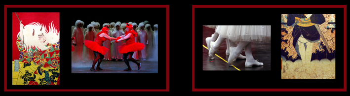 | Auf der .Bühne wird ein farbenfrohes .Kabuki zelebriert und in den .Zuschauerrängen geht es während- dessen zu, wie in einem Taubenschlag. .Ein fortwährendes Kommen und Gehen, herzliche .Begrüßungs- und Verabschiedungsszenen, .intensive. Gespräche und .Diskussionen herrschen unter den Besuchern. Die Kabukidarsteller spielen unterdessen unbeeindruckt weiter. In einigen Sitzreihen werden Picknick- körbe. geöffnet und die. mitgebrachten .Leckereien genussvoll verzehrt. .Manche .Zuschauer .schlafen ganz einfach ein und schnarchen laut vor sich hin. Dies waren die nachhaltigsten Eindrücke bei meinem ersten. Besuch 1988 in dem .Kabuki-Theater ."Minamiza" in Kyoto - neben den .herausragenden Leis- tungen der Darsteller versteht sich. Einerseits ist das Verhalten der Zuschauer nachvollziehbar, ein Ka- buki wird manchmal drei .Tage lang ohne .Unterbrechung aufgeführt, .andererseits .ein .kleiner .Kultur- schock für mich. .Bei einem .Besuch in der .Kölner. Philharmonie wird jedem Gast ein Hustenbonbon in die Hand gedrückt, .damit keiner der .Zuschauer auch nur in die .Nähe eines .Hustenreizes gerät, .denn ein .Hustenanfall könnte die. Konzertaufführung in ein akustisches .Desaster für .Zuhörer und Musiker verwandeln. Dabei gibt es auch im reglementierten .Kölner .Kulturbetrieb. so .etwas .wie. Kabuki-Flair. Beim alljährlichen Divertissementchen zur Karnevalszeit geht es locker zu.Und das in der Kölner Oper. Wahrscheinlich geblendet von meinem Neid gegenüber den Freiheiten in einem japanischen Auditorium - vermutlich hätte ich während eines Barenboim-Konzertes auch mal gern in einen Hamburger gebissen - fiel erst 20 Jahre später mein Blick auf die vielen Parallelen,die es auf den zweiten Blick zwischen Ka- buki und Divertissementchen zu entdecken gibt. .Lassen Sie sich mit meinen .Gegenüberstellungen von Photographien und .Holzschnitten in die optischen .Welten dieser japanischen und ur-kölschen .Theater- künste begleiten, .um dabei Parallelen oder Unterschiede zwischen diesen beiden weltweit einzigartigen Formen von "Nur-Männer-Theater" visuell aufzuspüren. ....................Csaba Peter Rakoczy, Köln 2009 |