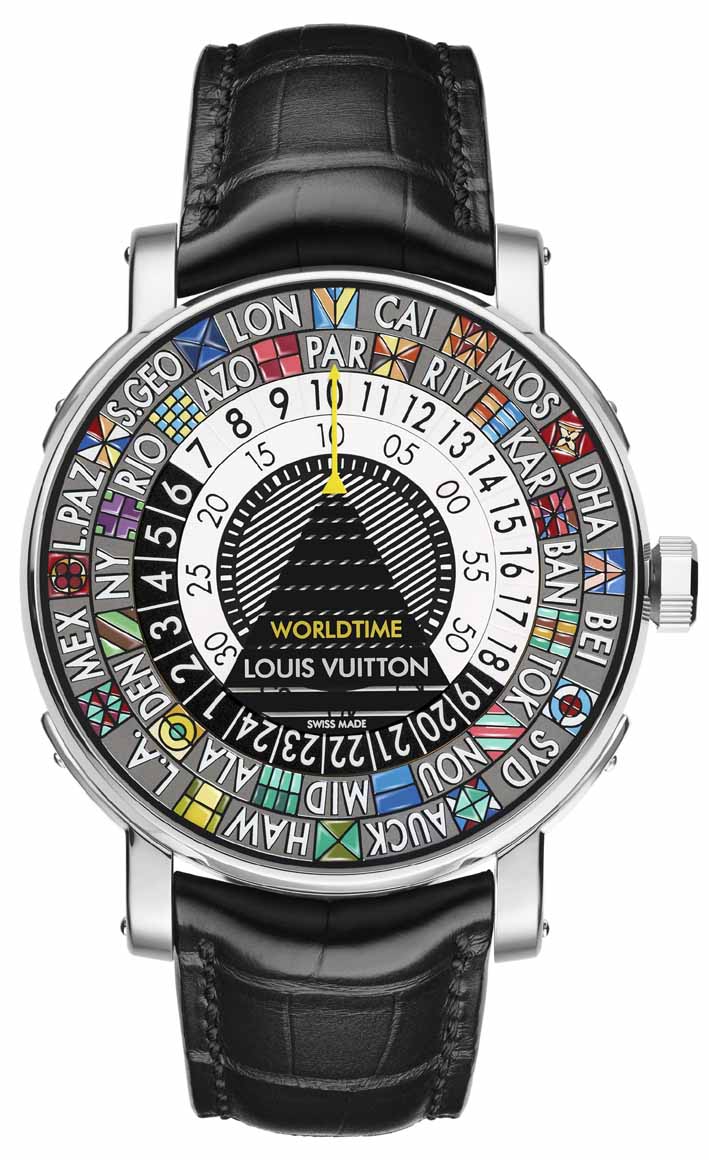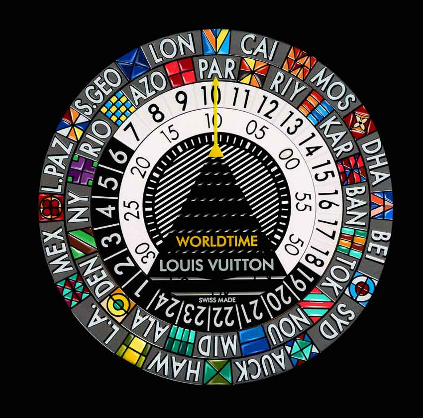 | Louis Vuitton Farbenfrohe Universalzeitanzeige Louis Vuitton ist berühmt für seine Reisekoffer. Seit 1854 reist, wer Rang und Namen hat, mit ihnen .stilvoll um die Welt. Doch die Koffer sind nicht die einzigen Accessoires, mit denen man auf solch einer Reise Aufsehen erregt. Stille und offene .Bewunderung erntet auch, wer eine .der. Escale Worldtime am Handgelenk trägt. Künstler haben mit .winzigen. Pinselstri- chen Ölfarben in über 30 Farbnuancen auf .geometrische Symbole aufge- tragen. Das Zifferblatt strahlt farbenfroh, kontrastreich .und hell, .wenn es nach 50 Stunden .Miniaturmalerei getrocknet den .100 Grad .heißen Ofen verlässt und zum faszinierenden, unverwechselbaren Gesicht dieser Rei- seuhr wird. Das Zifferblatt, das keinen Zeiger hat, weckt .vielfältige. Asso- ziationen: der .eine sieht .darin ein .Glücksrad in .Las Vegas, ein .anderer wiederum wird an eine .Dartscheibe .erinnert, und ein .dritter denkt beim Anblick an den Farbtest bei seinem Augenarzt. Das. Meer aus. Farben auf dem Zifferblatt lassen unzählige individuelle Interpretationen zu. Was man optisch auch in die originellen farblichen und .graphischen Str- ukturen, Symbole, Farbstreifen, Initialen oder .Wappen auch. hineininter- pretiert, die EscaleWorldtime bleibt ein einzigartiger, exklusiver Zeitmes- ser mit Weltzeit-Funktion. Ein .schwarzes Dreieck mit einem gelben Pfeil Richtung .12 Uhr wurde unmittelbar auf der .Glasunterseite .aufgebracht. Der .einzige .feste. Bestandteil des .Zifferblattes. Unter ihr bewegen sich drei separate .bewegliche Scheiben. Mittels .einer einzigen Krone lassen sie sich .einstellen und .werden vom .Automatikkaliber LV 106 synchron- isiert. Auf der äußeren .großen bunten .Scheibe sind die Initialen der Stä- dte untergebracht, die .Stadt. in. der. man. sich. befindet. wird bei 12 Uhr bzw. über dem gelben Pfeil des schwarzen Dreiecks positioniert. Die mit- tlere, in schwarzen und weißen Halbkreisen unterteilt, um Tag und Nacht zu unterscheiden, zeigt die Stunden und die kleinste Scheibe in der Mitte zeigt die Minuten an. Das Scheibensystem ermöglicht das Ablesen der Uhrzeit in allen 24 Zeit- zonen auf einen Blick. Diese originelle Interpretation der Weltzeit mit rot- ierenden Scheiben ohne Zeiger ist eine Weltneuheit und passt perfekt in unsere globalisierte Welt, in der die .Grenzen immer stärker .verschwim- men. Deshalb heißt es Koffer packen und die Reise samt der farbenfroh- en Weltzeituhr kann starten. Reiseinformationen zur Escale Worldtime: 41mm Durchmesser, 38 Stun- den Gangreserve, Gehäuse aus 18 Karat Weißgold und 30 Meter Wasser- dichte. |